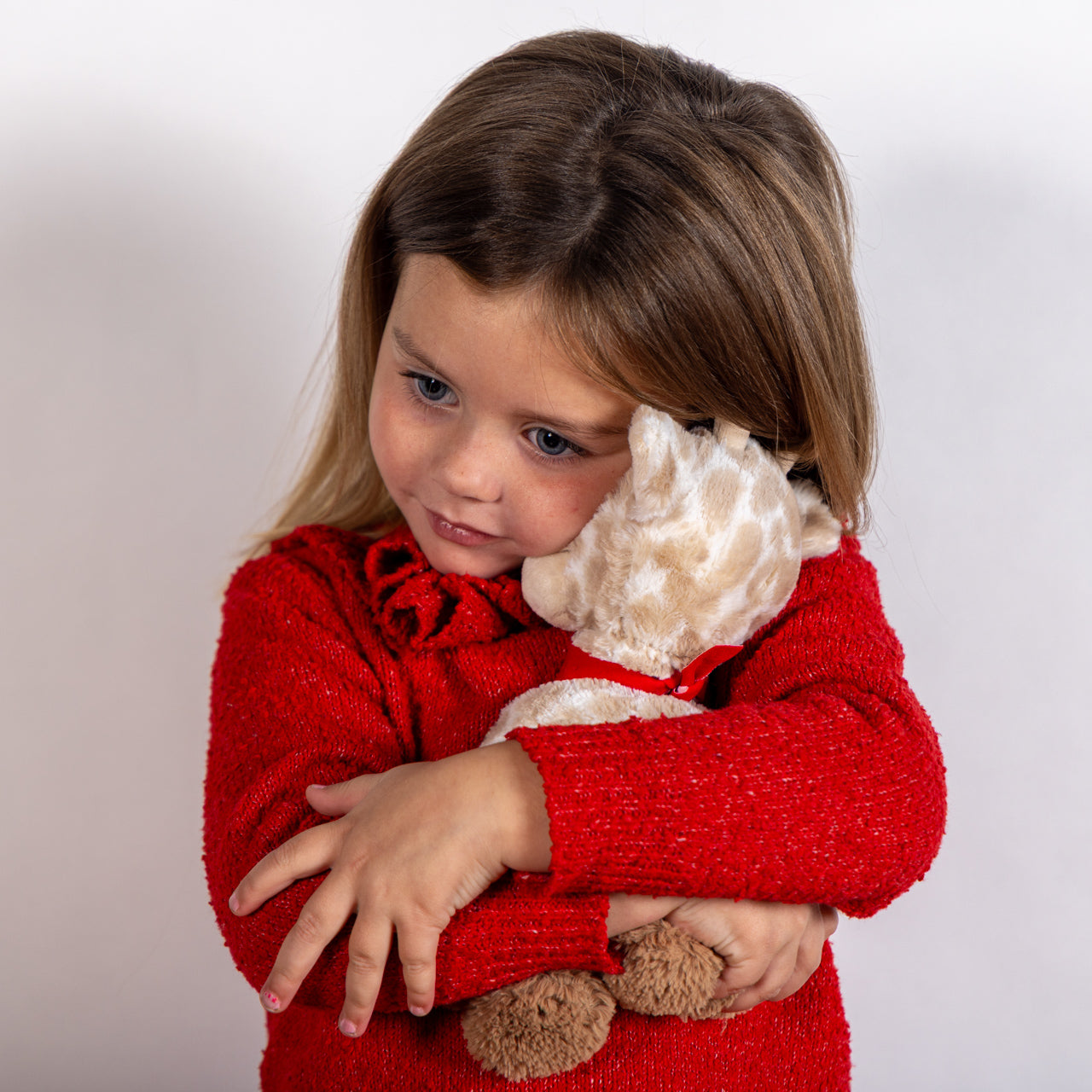 Bring home a touch of playful charm with our Giraffe Plush with rattle. Standing 11” tall, this adorable plush giraffe named Gary is dressed in a vibrant red bandana featuring the My Old Kentucky Dinner Train circle logo, adding a unique and memorable touch. Its embroidered facial features and ultra-soft fabric make it irresistibly huggable and safe for little ones.